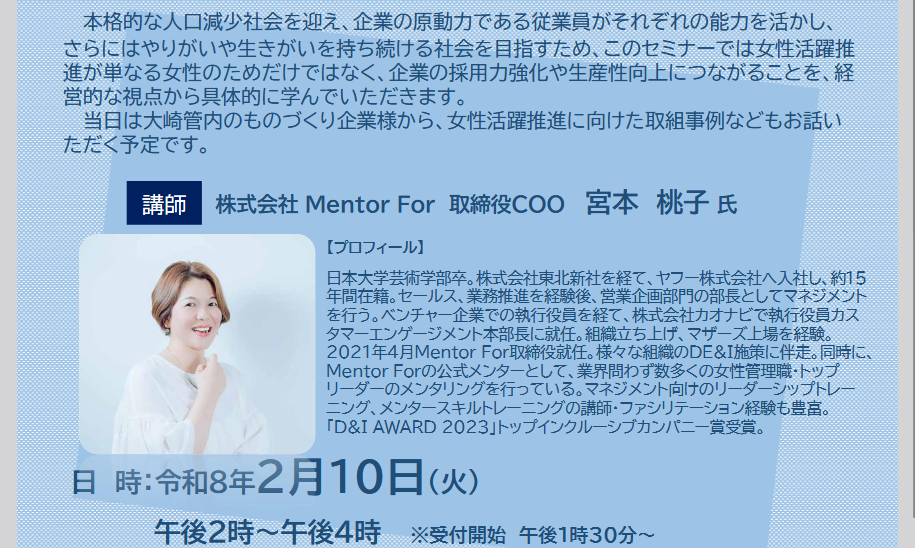 他にも人材確保・人材育成を行うため、大崎地域の企業と各産業支援機関、他地域の企業をつなぐプラットフォームとなるよう事業を進めております。